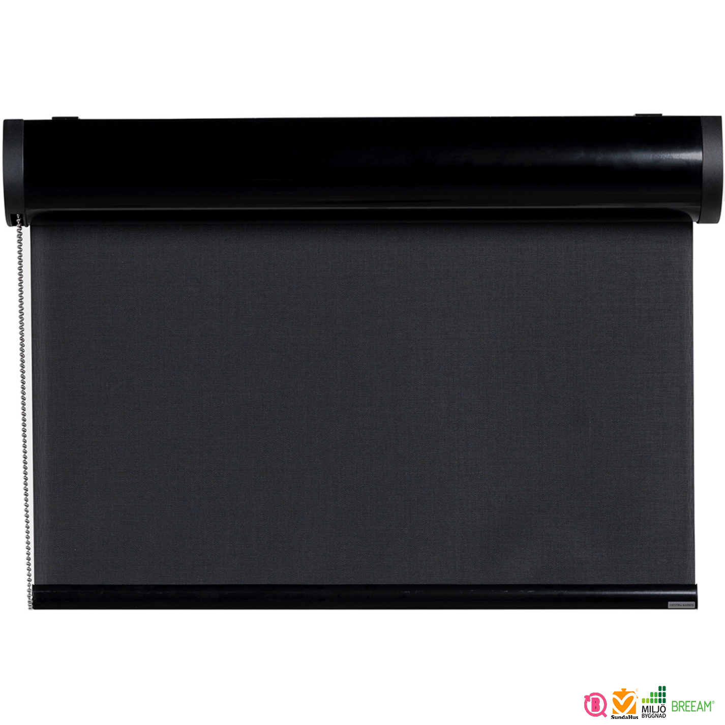 Du kan få din rullgardin med insydd bottenlist eller utanpåliggande aluminiumlist.
