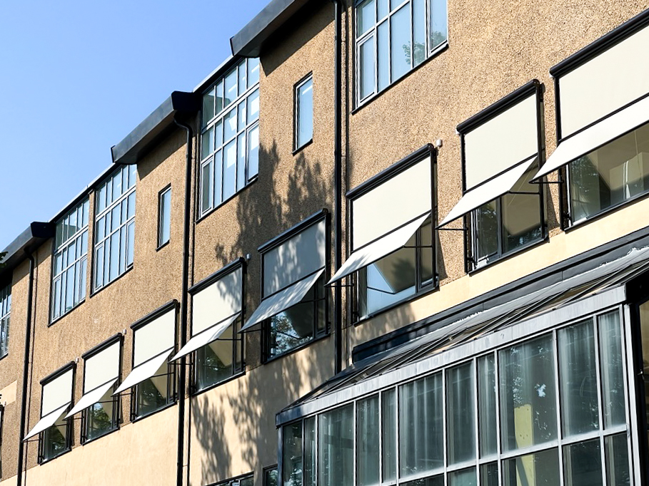 Hestra Knut är en stabil kombination av den klassiska fönstermarkisen och en vertikalmarkis som passar för flera typer av byggnader och offentliga miljöer. Vår breda kollektion av vävar ger möjlighet att matcha väven med exempelvis fasaden eller företagets profilfärger. Dukarna är ljus- och väderbeständiga och finns i flera varianter.