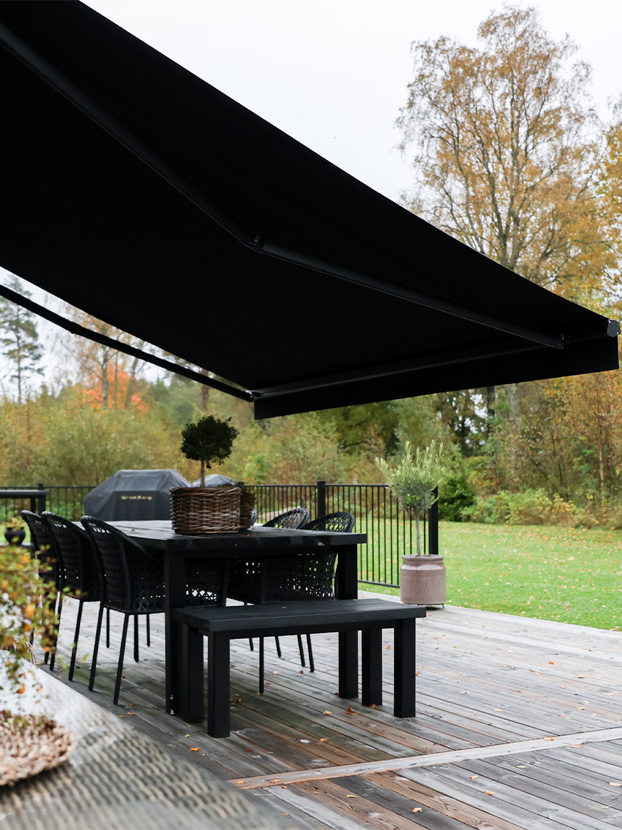 Hestra Karl är en terrassmarkis som passar perfekt för den lite större altanen, uteplatsen eller balkongen. Med sin stilrena design och stabila konstruktion ger den både skön skugga och ett trivsamt utomhusrum – perfekt för lata sommardagar eller middagar i kvällssolen.