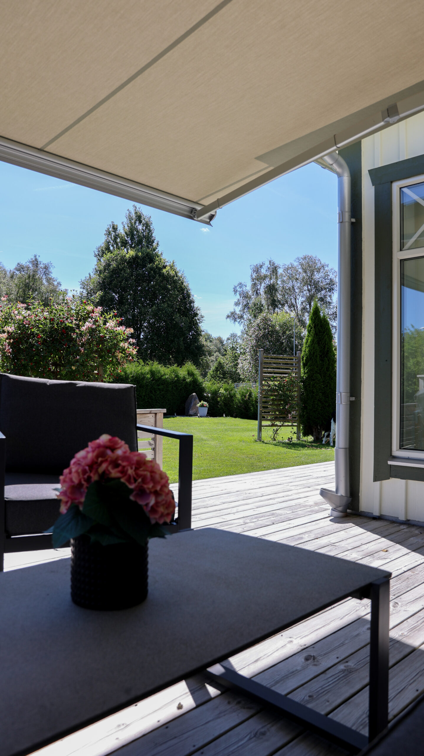 Hestra Ragnar är en av våra populära terrassmarkiser. Med sin stilrena front blir markisen både ett smycke på fasaden samtidigt som den smälter in i densamma. Möjlighet finns även att addera frontrullgardin.